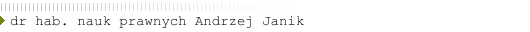 Prowadzący Kancelarię Radcy Prawnego dr hab. nauk prawnych Andrzej Janik, prof. nadzwyczajny Szkoły Głównej Handlowej w Warszawie, jest czynny w doradztwie prawnym od r. 1985.